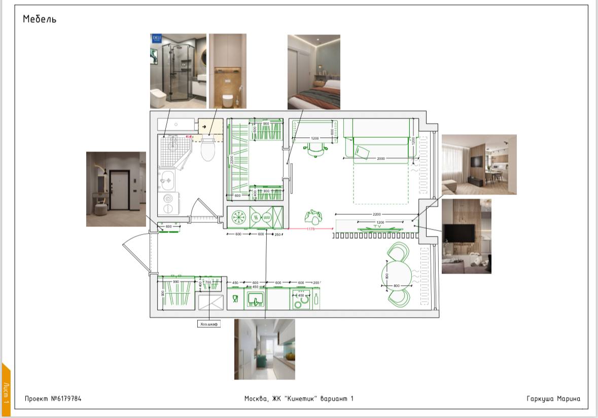 Пожелания заказчиков: наличие гардеробной, возможно использование кровати-трансформера